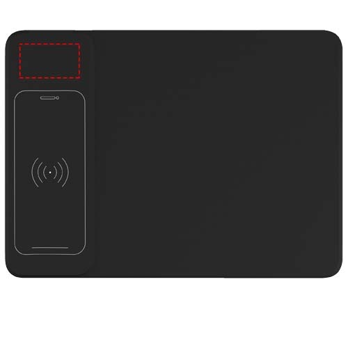 Stazione di ricarica wireless da 10 W con logo luminoso per mouse. Ingresso/uscita USB: 5 V - 2 A. Cavo USB di 1 metro incluso. L'imballaggio è realizzato in carta riciclata.