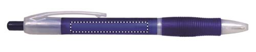 Penna a sfera in ABS con impugnatura in gomma. Meccanismo a scatto. Refill nero.