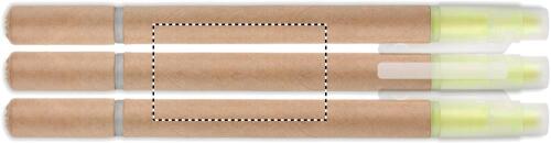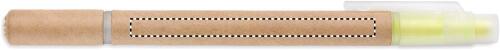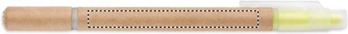 2 in 1 penna in cartone con inchiostro blu ed evidenziatore giallo.