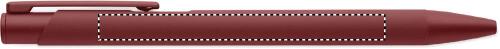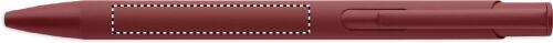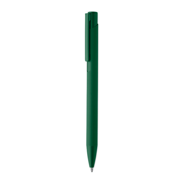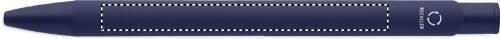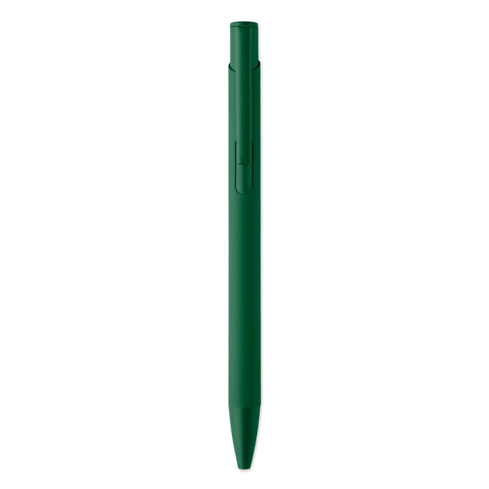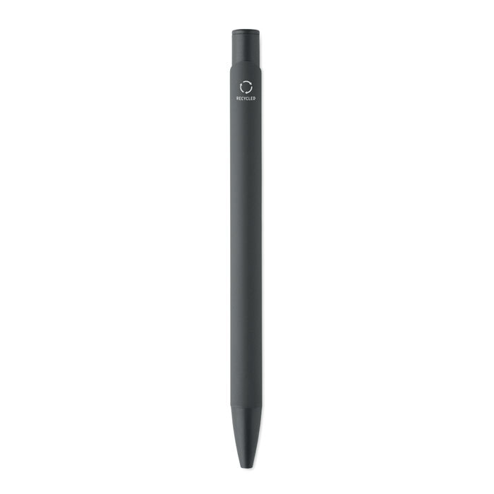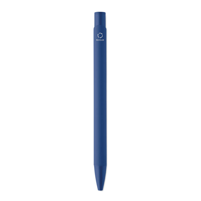 Penna a pressione in alluminio riciclato con clip in ferro e fusto gommato a colori. Inchiostro blu.