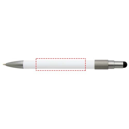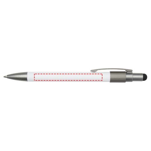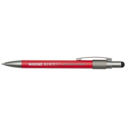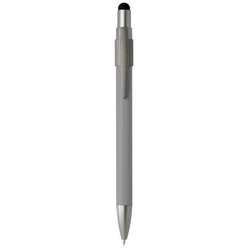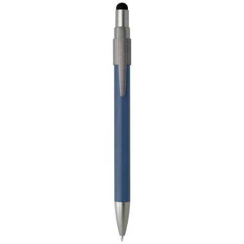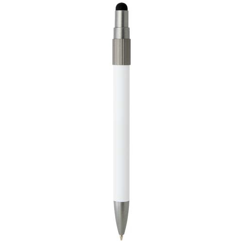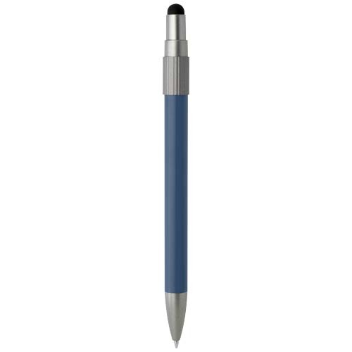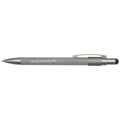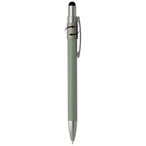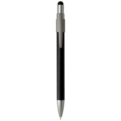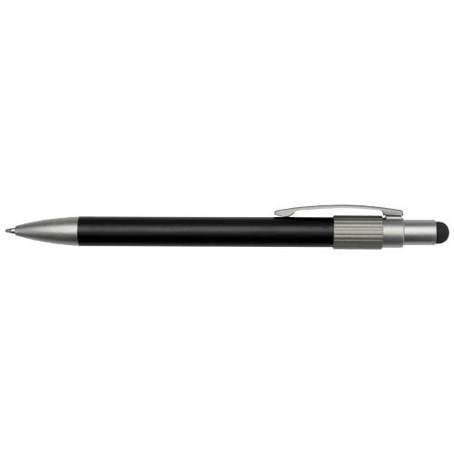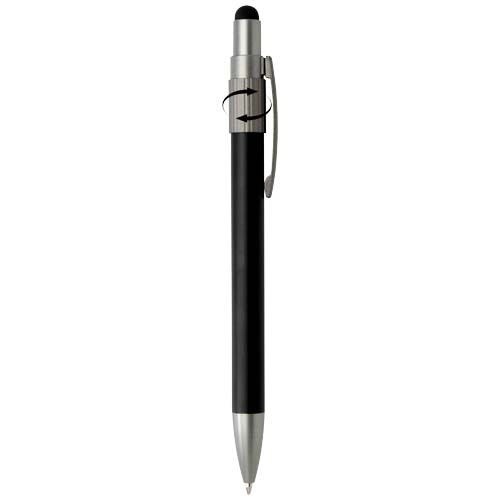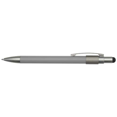 Penna a sfera con stilo e rotella antistress, che combina la praticità a un design giocoso. La penna è realizzata in alluminio riciclato certificato RCS ed è dotata di un meccanismo a pressione fluido e di una punta a stilo per utilizzare i touchscreen. La rotella incorporata sulla parte superiore contribuisce a ridurre lo stress (basta sfiorarla per attivarla). Colore dell'inchiostro della penna: nero. Capacità di scrittura: 1000 metri.