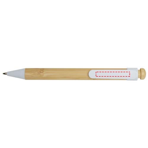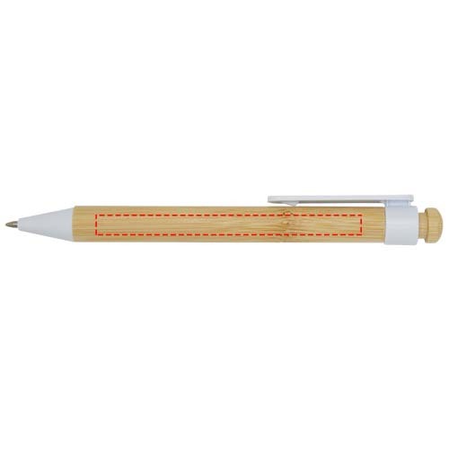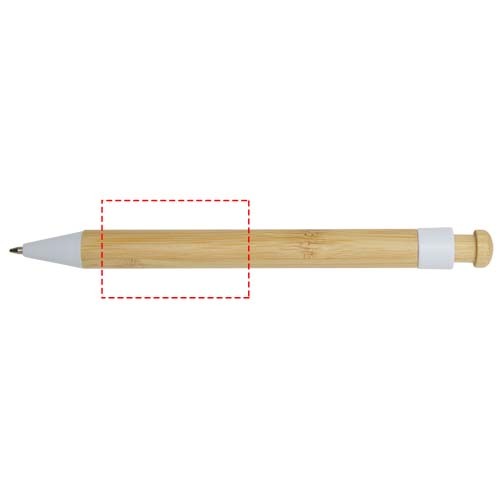 Penna a sfera con clip e punta in plastica riciclata, mentre il pulsante e il fusto sono in bambù. Colore dell'inchiostro: Nero. Capacità di scrittura: 1000 metri. Dimensione del pennino: 1,0 mm.