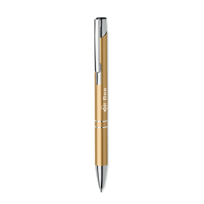 Penna a sfera a pulsante in alluminio riciclato. Inchiostro blu.