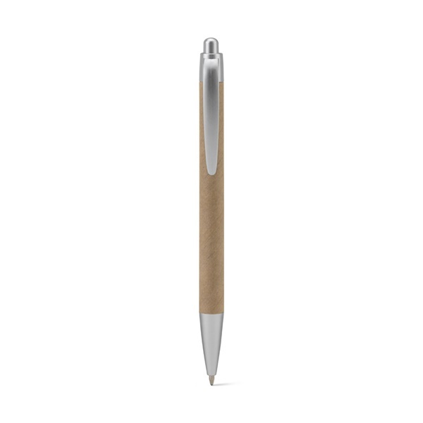 Penna a sfera realizzata al 100% con carta riciclata e dettagli in ABS riciclato (100% rABS). Dotata di clip e scrittura blu. Una penna a sfera realizzata con materiali riciclati per far risaltare il tuo marchio