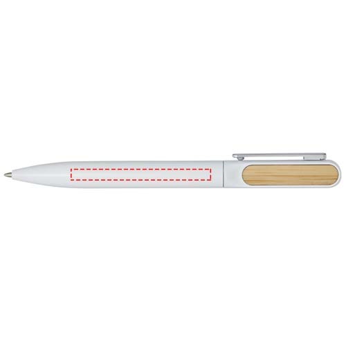 La penna a sfera Blanca ha il fusto superiore realizzato in plastica riciclata con rivestimento verniciato a spruzzo colorato e accessori in bambù su entrambi i lati. La parte inferiore del fusto è realizzata in alluminio riciclato con rivestimento verniciato a spruzzo colorato. Colore dell'inchiostro: Nero. Capacità di scrittura: 400 metri. Dimensione del pennino: 1,0 mm.