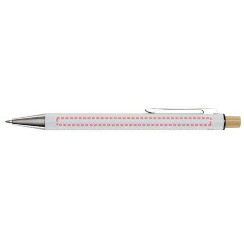 La penna a sfera Cyrus è realizzata in alluminio riciclato, che richiede meno energia nella produzione rispetto all'alluminio proveniente da materie prime. Riduce inoltre la quantità di rifiuti nelle discariche e aiuta a conservare le risorse naturali con l'obiettivo di ridurre le emissioni di gas serra. Il pulsante è realizzato in bambù. Colore dell'inchiostro: Nero. Capacità di scrittura: 800 metri. Dimensione del pennino: 1,00 mm.