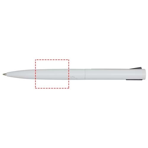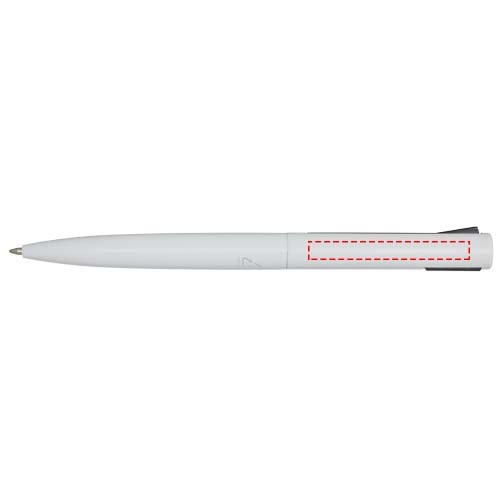 Penna a sfera con fusto superiore realizzato in plastica riciclata e parte inferiore realizzato in alluminio riciclato. La clip è realizzata in ferro. Colore dell'inchiostro: Nero. Capacità di scrittura: 1000 metri. Dimensione del pennino: 1,0 mm.