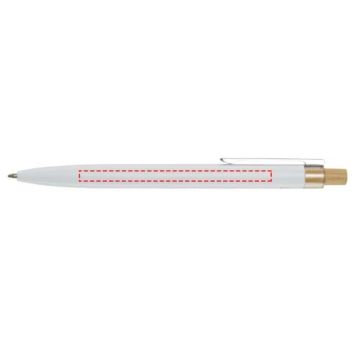 La penna a sfera Nooshin è realizzata in alluminio riciclato, che richiede meno energia nella produzione rispetto all'alluminio proveniente da materie prime. Riduce inoltre la quantità di rifiuti nelle discariche e aiuta a conservare le risorse naturali con l'obiettivo di ridurre le emissioni di gas serra. Il pulsante è realizzato in bambù. Colore dell'inchiostro: Blu. Capacità di scrittura: 800 metri. Dimensione del pennino: 1,00 mm.