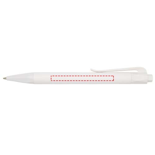 Penna a sfera duratura e ricaricabile, con meccanismo a scatto, 100% in PLA (plastica da mais) per ridurre la quantità di plastica utilizzata. Cartuccia in dotazione, per generare in media 2000 metri di scrittura. La penna viene sempre fornita con una cartuccia di inchiostro blu. Custodia di cartone.