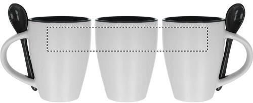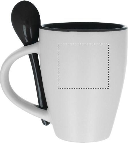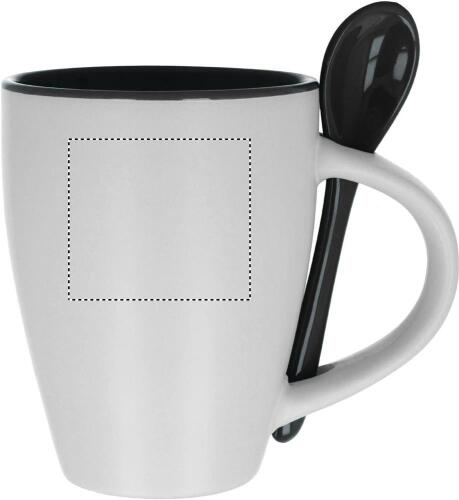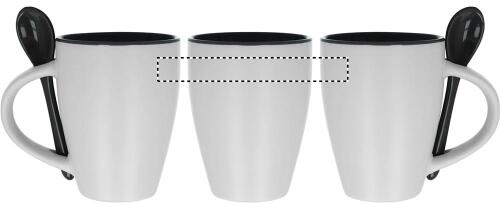 Tazza (250ml) bicolore in ceramica con cucchiaino abbinato. Confezione singola.