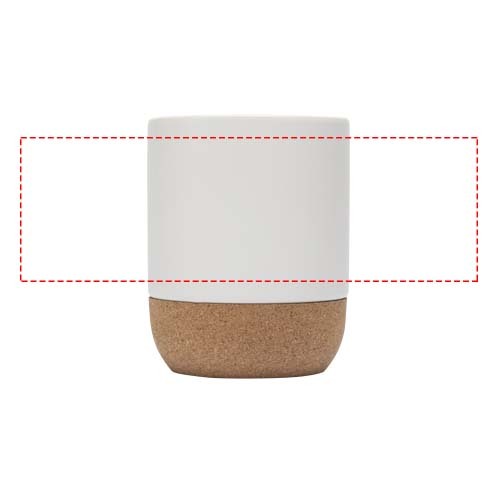 Tazza in ceramica con dettaglio in sughero sulla base e speciale rivestimento esterno che consente la stampa a sublimazione. Interno ed esterno di colore bianco lucido. Lavare a mano con acqua tiepida e detergente delicato. Fornita in una confezione regalo in cartone riciclato. Capacità: 300 ml.