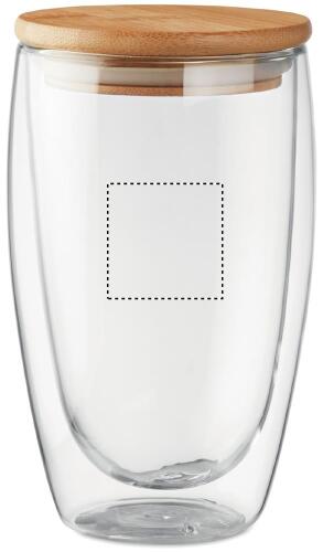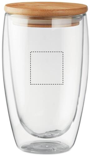 Bicchiere in doppio vetro borosilicato con tappo in bamboo con anello in silicone. Capacità 450ml.