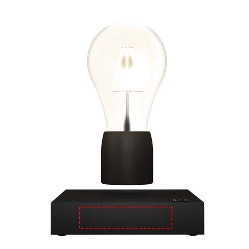 Elegante lampada a levitazione magnetica che si adatta perfettamente a qualsiasi tipo di scrivania. La lampada è composta da una base in gomma soft-touch con logo luminoso personalizzabile. La potente tecnologia magnetica solleva e fa fluttuare la lampada sulla base. L'accensione e lo spegnimento della lampada sono controllati tramite un pulsante a sfioramento che si trova sulla base. Potenza massima: 130 lumen. La lampada misura 12 x 12 x 16 cm ed è fornita in una confezione regalo di colore nero con chiusura magnetica (18,5 x 13 x 13 cm). Garanzia di 3 anni inclusa.
