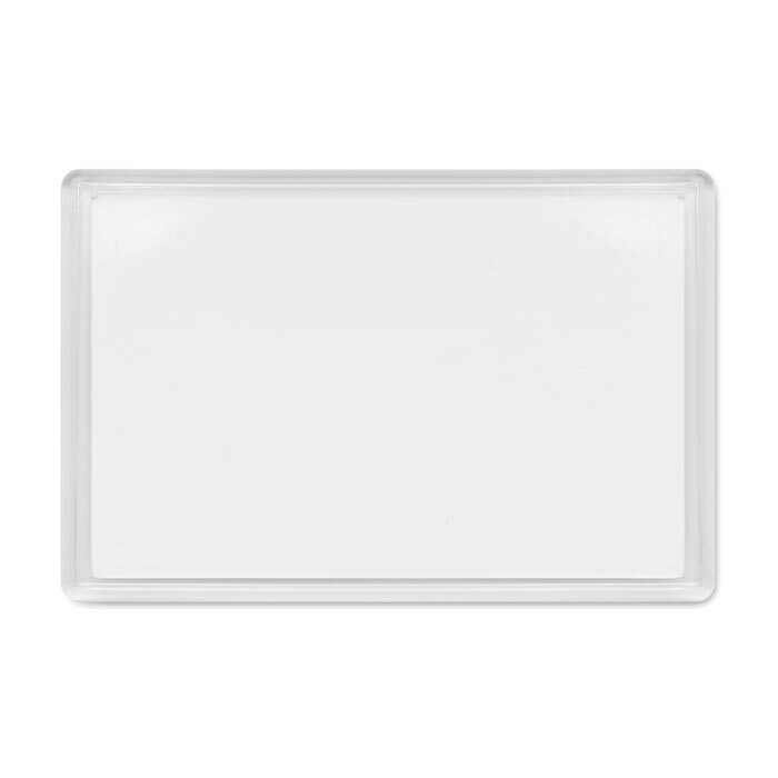 Portafoto rettangolare in acrilico con magnete. Adatto a foto inlay di dimensioni 8,8 x 5,6 cm. Ideale come souvenir o per immortalare ricordi di famiglia sul frigorifero.