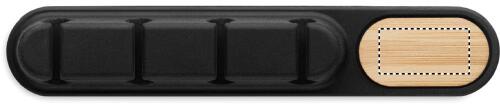Organizzatore di cavi in silicone con dettagli in bambù naturale. Il design ovale compatto mantiene i cavi in ordine e al sicuro.