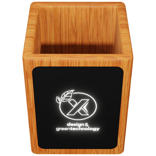 Portamatite in legno (7,2 x 7,2 x 9 cm) con 2 uscite USB. USB 1.0 e USB tipo C da 1 A. Il logo luminoso è applicato sulla parte anteriore e si illumina quando la USB viene inserita. Fornito con un cavo di ricarica realizzato in PET riciclato. Il legno di betulla utilizzato proviene da fonti sostenibili, responsabili dal punto di vista ambientale e sociale. Il portamatite è fornito in una confezione regalo (11 x 7,5 x 8,4 cm) con chiusura magnetica. Garanzia di 3 anni inclusa.