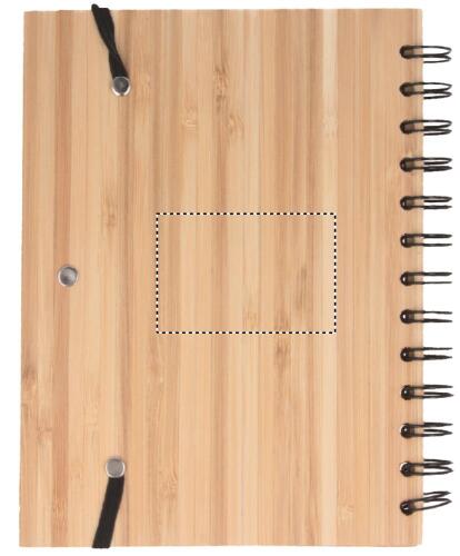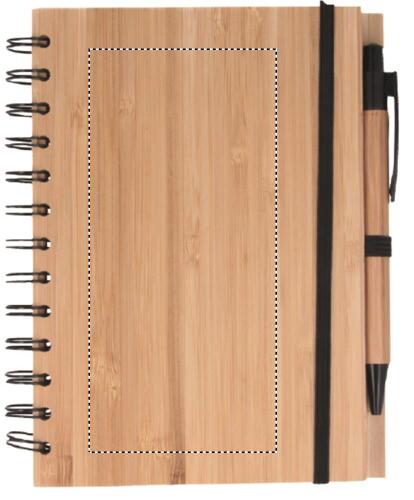 Notebook con copertina in bambù con penna abbinata. Doppia spirale. 140 pagine di carta riciclata standard (70 fogli). Penna a sfera a pulsante abbinata con fusto in bamboo e dettagli in ABS. Portapenne elastico. FSC®-certified | FSC 100%, N5.7, FSC-C213206
