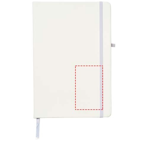 Notebook A5 con chiusura elastica in colore coordinato, anello portapenna e nastro segnapagina. Composto da 96 fogli di carta a righe da 70 g/m2. Copertina in similpelle soft feel.