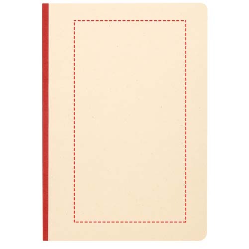 Blocco note formato A5 con copertina morbida, angoli arrotondati e 72 fogli a righe in carta da 90 g/m². La copertina è realizzata in PET riciclato e carta derivante dalla canna da zucchero.