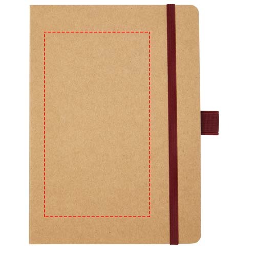 Blocco note in carta riciclata a righe (70 g/m²), 80 fogli con angoli arrotondati, elastico colorato e portapenne che si abbina ai colori della penna codice 107384.