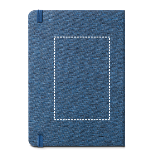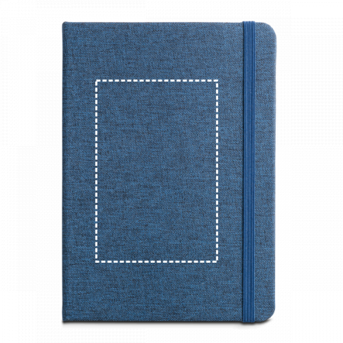 Blocco note A5 con copertina rigida in poliestere riciclato (100% rPET). Contiene 192 pagine a righe con carta color avorio realizzato con materiale certificato FSC™ e altri materiali controllati, nastro separatore, elastico e tasca sul retro