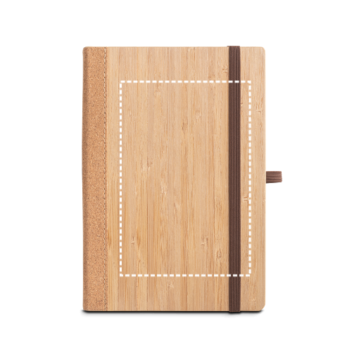 Block notes A5 con copertina rigida in bambù e fogli in sughero. Contiene 160 pagine (70g/m²) a righe colore avorio, 100% di carta riciclata, nastro separatore e elastico di supporto per penna a sfera (non inclusa). Poiché il prodotto è realizzato con materiali naturali, il colore del prodotto e il risultato della stampa possono variare da un prodotto all'altro