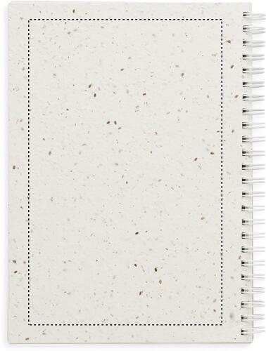 Notebook A5 con copertina in carta di semi. Doppio formato. 200 pagine a righe riciclate (100 fogli).