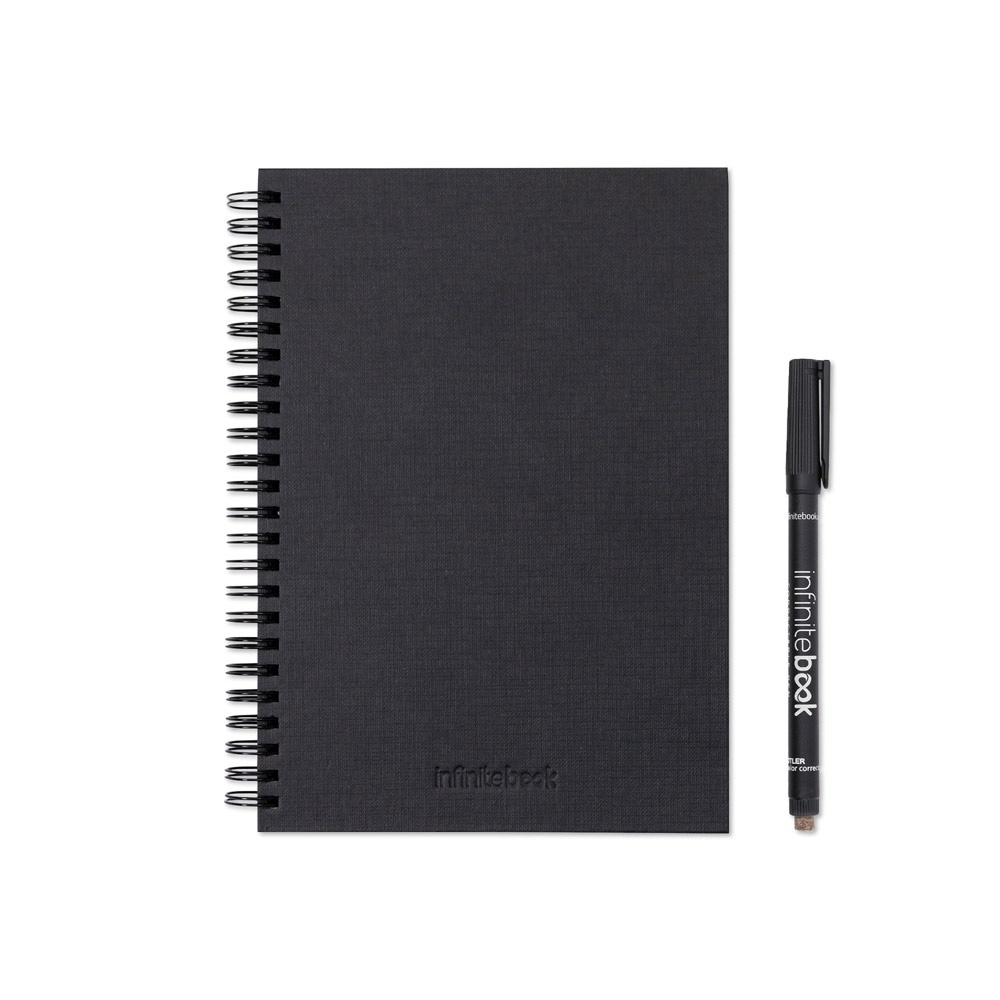 Il starter kit "Infinitebook - Planner Texture" consente di cancellare facilmente tutto ciò che si scrive e di ricominciare il piano giornaliero tutte le volte che si vuole. Il kit contiene un quaderno "Infinitebook" con copertina rigida e spirale, un kit di pulizia (flacone spray vuoto, spugna e panno), un pennarello e un porta pennarello. Il quaderno ha 1 pagina per segnare le cose da fare, 5 pagine per l'organizzazione settimanale, 3 pagina per l'organizzazione mensile, 1 pagina per l'organizzazione annuale suddivisa in mesi, 1 pagina per gli appunti e 8 pagine a puntini. Gli appunti possono essere digitalizzati. 148 x 210 mm