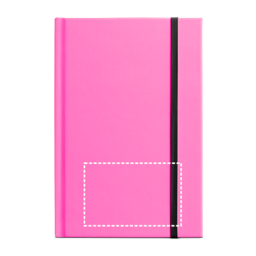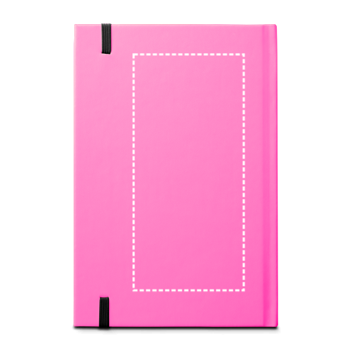 Block notes A5 con copertina rigida in PU fluorescente. Presenta 192 pagine a righe bianche (70 g/m²) con bordo nero, nastro di separazione ed elastico. 140 x 210 mm