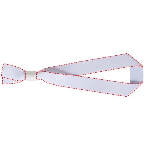 Braccialetto El per festival in PET riciclato con chiusura di sicurezza in PET riciclato. Disponibile con stampa full color su uno o due lati. Per stampa su due lati è possibile scegliere tra sublimazione standard o piazzata (piazzata significa che la stampa sarà allineata su entrambi i lati). Il gancio di sicurezza one-way impedisce che l'articolo venga rimosso, caratteristica che lo rende il pass di sicurezza perfetto per feste ed eventi.