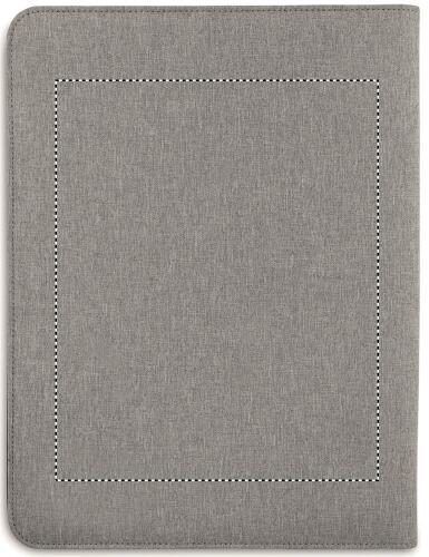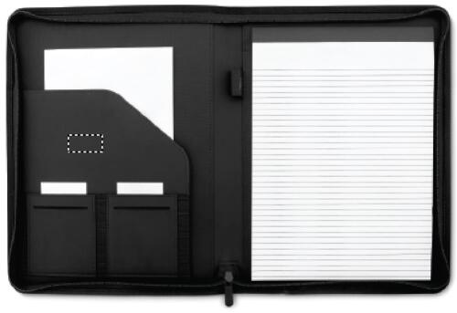 Cartella conferenza A4 in poliestere bicolore, con cerniera. Blocco note da 20 pagine a righe. 3 scomparti. Porta penna.