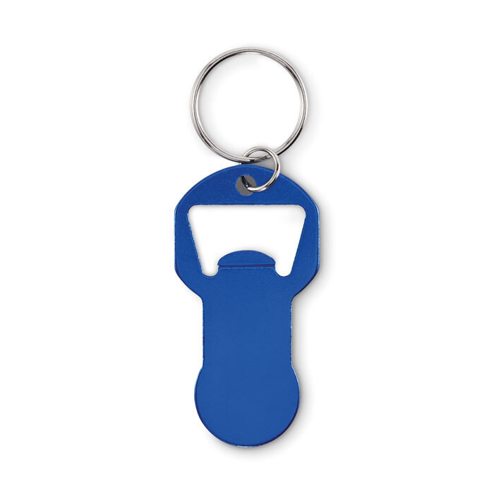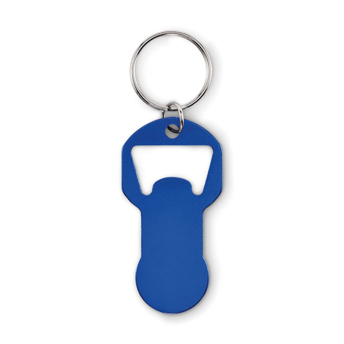 Portachiavi apribottiglie in alluminio riciclato con anello in ferro.