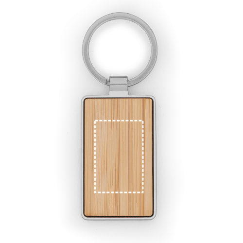 Portachiavi rettangolare in ferro zincato e bambù. Fornito in un sacchetto di carta kraft. Poiché il prodotto è realizzato con materiali naturali, il colore del prodotto e il risultato della stampa possono variare da un prodotto all'altro. Anello: ø 32 mm | Prodotto: 51 x 32 x 4 mm |