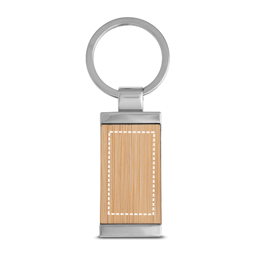 Portachiavi rettangolare in bambù e metallo. Fornito in confezione regalo. Poiché il prodotto è realizzato con materiali naturali, il colore del prodotto e il risultato della stampa possono variare da un prodotto all'altro