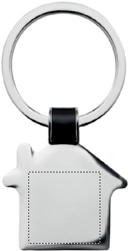 Portachiavi a forma di casa in metallo rivestito di nickel lucido.
