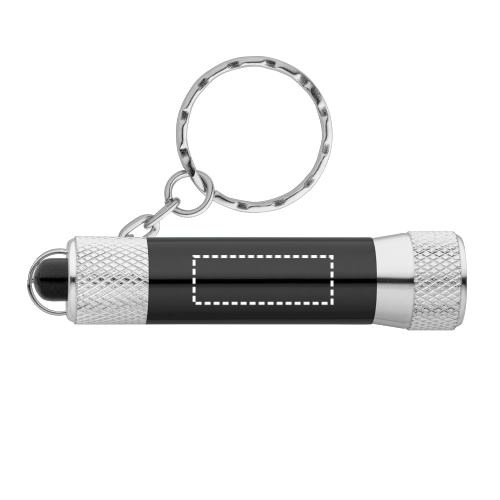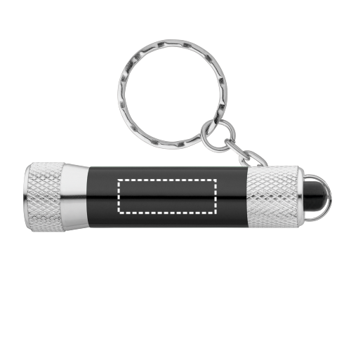 Portachiavi in alluminio con 3 luci a LED. Include 4 pile LR44. Anello: ø 25 mm | Prodotto: ø17 x 70 mm | Catena: 35 mm | Totale: 112 x 25 x 17 mm