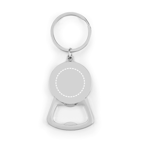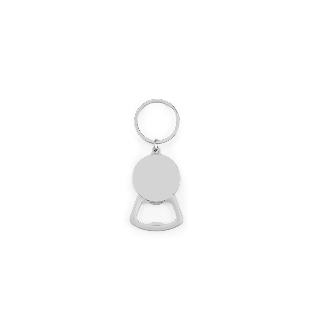 Portachiavi in ferro con forma rotonda in zinco e bambù. La funzione apribottiglie rende questo portachiavi un accessorio pratico da avere sempre a portata di mano. Fornito in un sacchetto di carta kraft. Poiché il prodotto è realizzato con materiali naturali, il colore del prodotto e il risultato della stampa possono variare da un prodotto all'altro. Anello: ø 32 mm | Prodotto: 58 x 39 x 3 mm | Connettore: 9 mm |