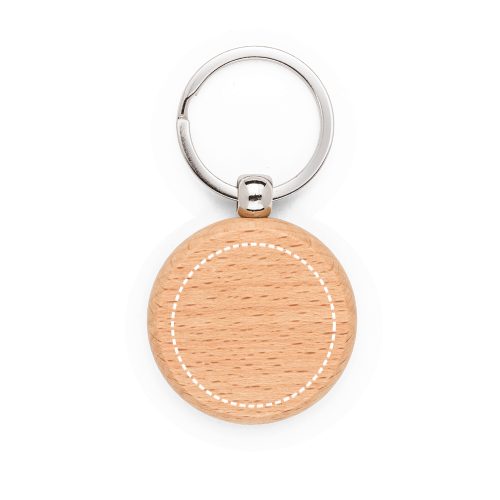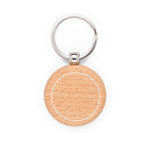 Portachiavi tondo in legno di faggio con anello in ferro. Poiché il prodotto è realizzato con materiali naturali, il colore del prodotto e il risultato della stampa possono variare da un prodotto all'altro