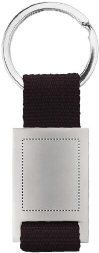 Portachiavi rettangolare in metallo e fascetta colorata.