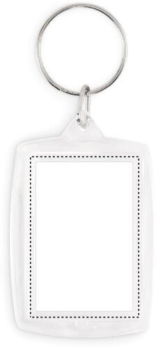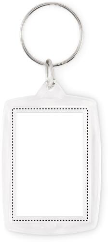 Classico portachiavi in acrilico con inserto in carta a colori. Dimensioni della foto interna: 4,1 x 2,7 cm