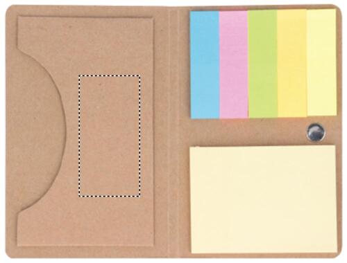 Portacarte in carta kraft. Blocchi per appunti adesivi assortiti in carta riciclata. Cinturino elastico di chiusura.
