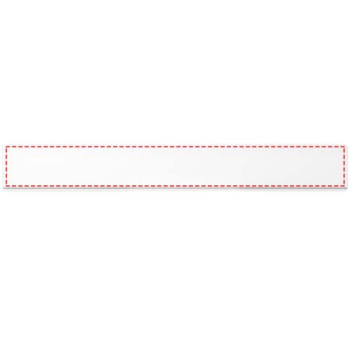 Resistente righello in plastica riciclata disponibile con marcature in pollici e in centimetri.