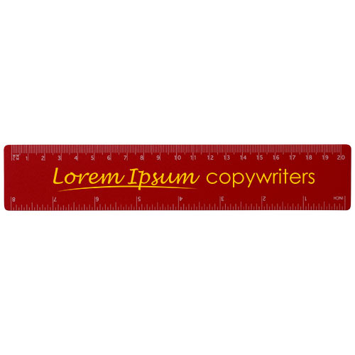 Righello flessibile in plastica leggera con marcature in pollici e in centimetri. Attenzione: le marcature del righello vengono stampate insieme all'artwork. I righelli acquistati neutri saranno consegnati senza marcature.